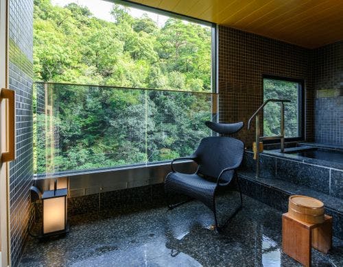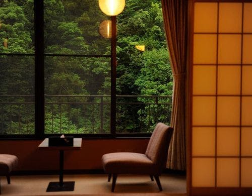 - JR加賀温泉駅からバスで山中温泉バスターミナル25分。さらに徒歩3分。(無料送迎有。要予約14:00~18:00)。