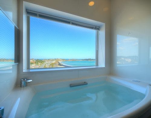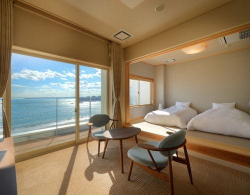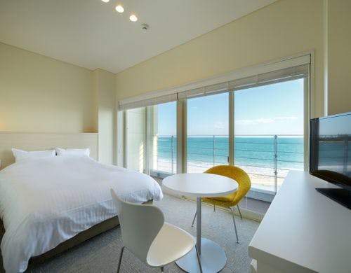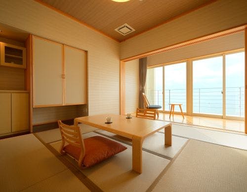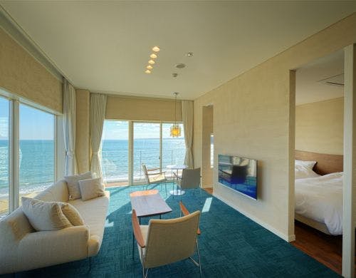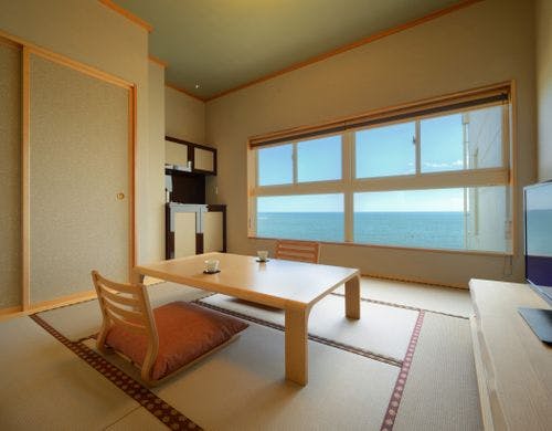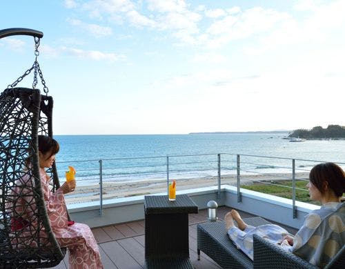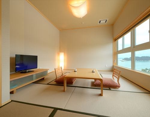 大谷海岸I.C.より車で約1分の「はまなす海洋館」は、目の前に広がる砂浜と大谷海岸の水平線が一望できる宿です。客室は自然の雄大さを引きだたせるシンプルな作りで、大きな窓からは大谷海岸の水平線と潮騒を満喫できます。創業85周年の伝統を元に、当ホテルでしか味わえない気仙沼の料理を提供しています。お料理は、新鮮な三陸産の魚介類だけでなく、堆肥から手作りしたミネラル豊富な有機野菜を合わせた最高の一皿となっています。浴場は24時間入浴可能なため、時間ごとに変わる海の風景を眺められます。