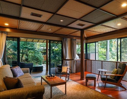 ”頑張った私へ、リラックスのご褒美” 森の中にひっそりと佇むログハウスの様な、静かに寛げる和風リゾートです。