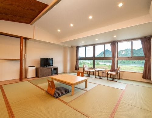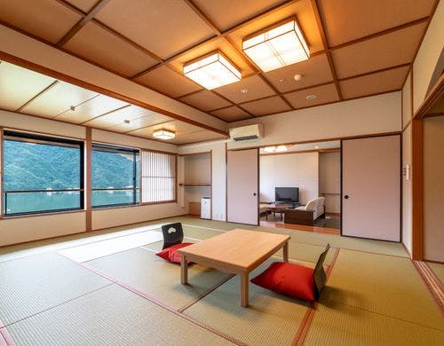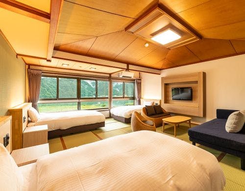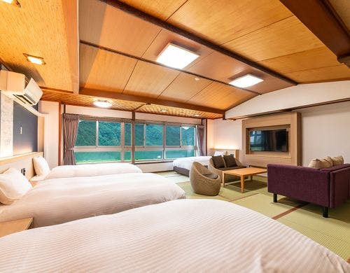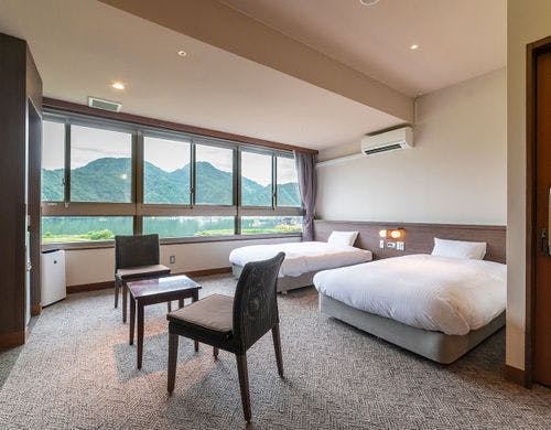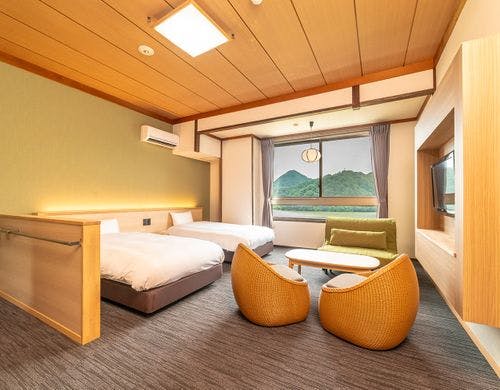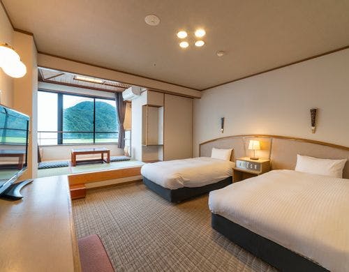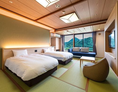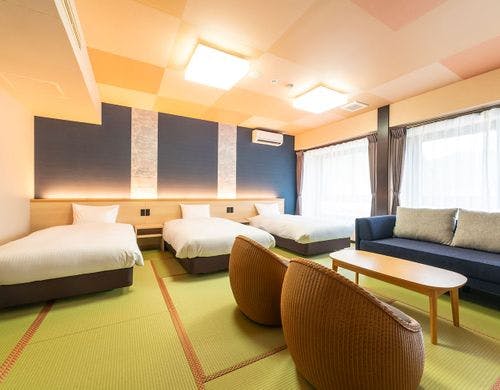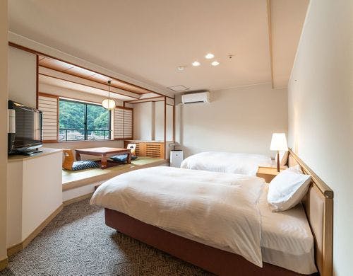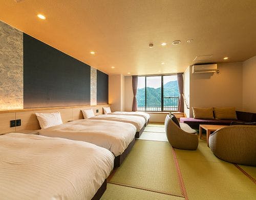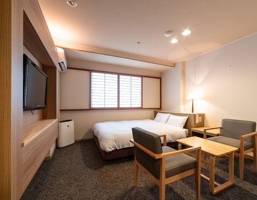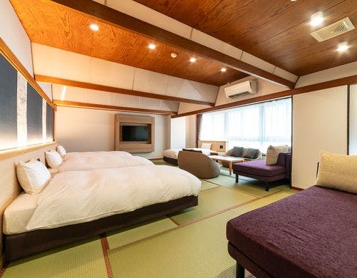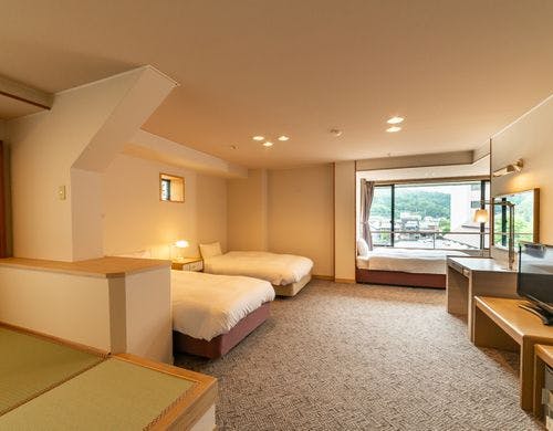 客室は、和室、洋室、メゾネットなど多彩な客室タイプから選べます。城崎の湯を楽しめる大浴場があることから、客室内に浴室があるタイプ、シャワーのみのタイプ、浴室のない部屋があります。アメニティはロビーや大浴場脱衣所で提供され、快適に過ごせます。