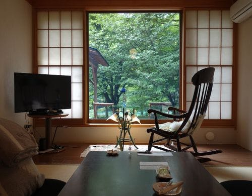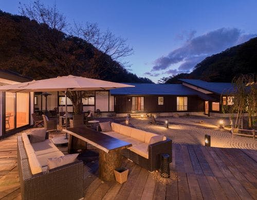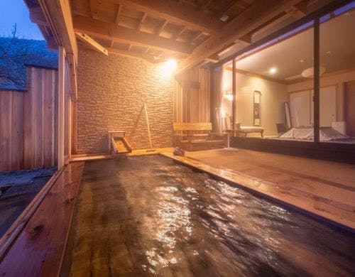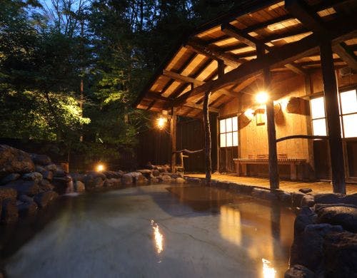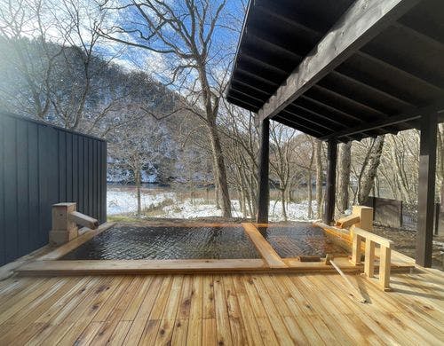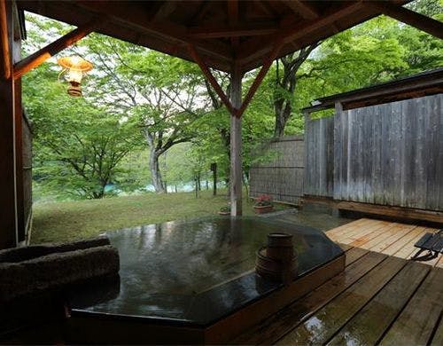 秋田屈指の渓谷美を誇る抱返り渓谷の中に佇む源泉かけ流しの温泉。全室が露天風呂付の訪れた人を魅了する一軒宿。