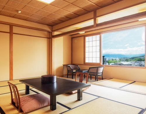 【露天風呂付き客室】も人気。天然温泉と信州松本の旬食材を使用した会席を堪能。旅情に満ちた癒しの温泉宿
