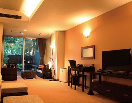 豊かな緑の中に川のせせらぎと小鳥のさえずりが聞こえる温浴施設。サウナ後の外気浴は唯一無二。