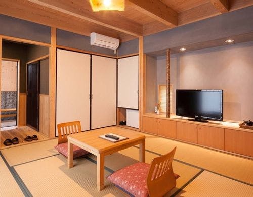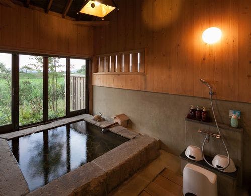 鷹の庄のお部屋は全室離れ、源泉掛流しの専用温泉付。いつでも美肌の湯をお楽しみ頂けます。