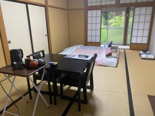 国宝五重塔へ徒歩5分で行ける場所にあり、茅葺屋根の宿坊です。全館Wi-Hi完備。