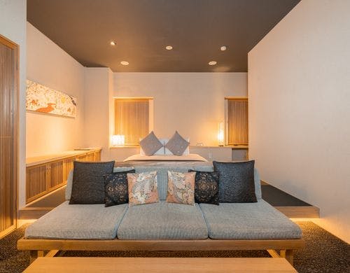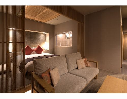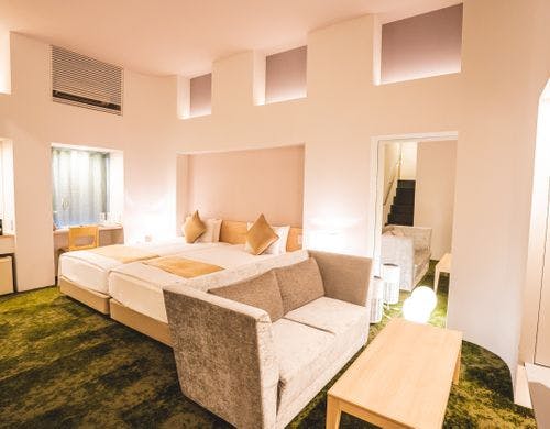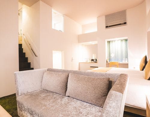 喧騒から少し離れ、落ち着いた西麻布エリアに位置するホテル。ユニークなデザインコンセプトの客室は、まさに大人のための隠れ家