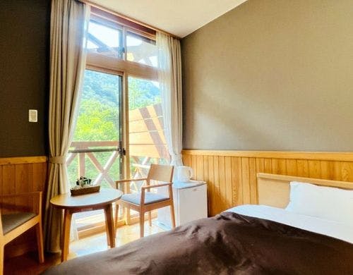 天然温泉有り。地元の料理も楽しめる。美しい自然に囲まれ、都会では味わえない空間で身も心もリフレッシュ