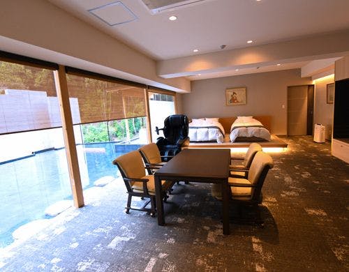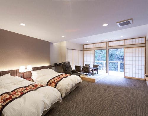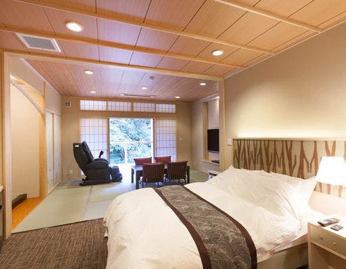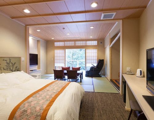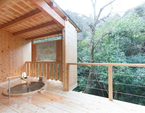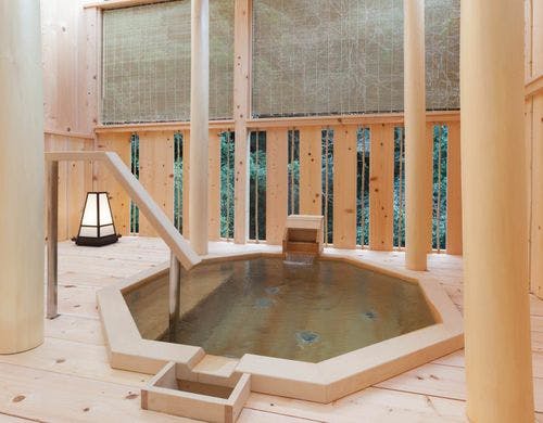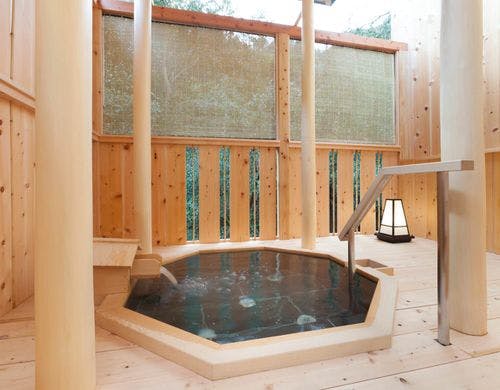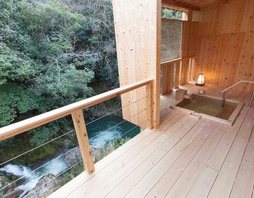 全てのお部屋にひば造りの露天風呂が付いています。大自然や川のせせらぎを感じながら、大人の隠れ宿として羽を伸ばして下さい。