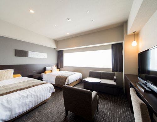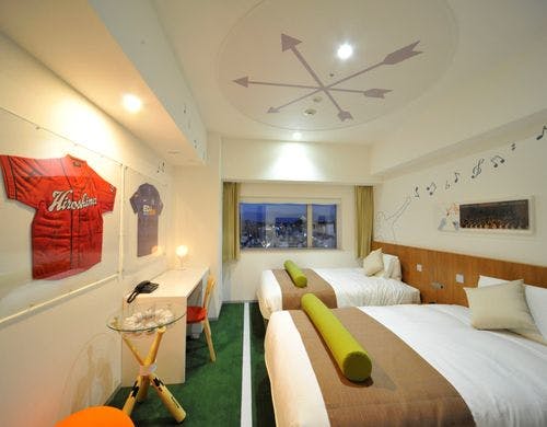 客室は、シングルルームからデラックスダブルルーム、トリプルルーム、ユニバーサルルームまで多様な客室タイプが揃っています。広島の魅力を反映したコンセプトルームの「ひろしまルーム」もあり、地域の文化を感じられる設えが特徴です。アメニティも充実しており、快適な滞在が叶います。