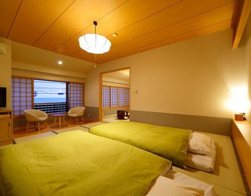 【口コミ高評価】全室オーシャンビュー、3種類の貸切風呂が利用可能!自慢の金目鯛と天然温泉で寛ぎの時間を。