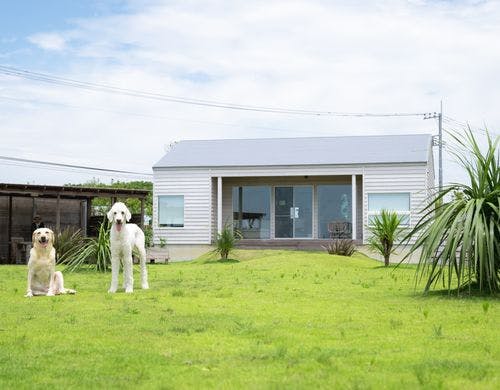 九十九里海岸沿いのドッグコテージ、専用のお庭でのBBQや広い砂浜のお散歩などをお楽しみください。
