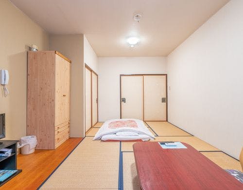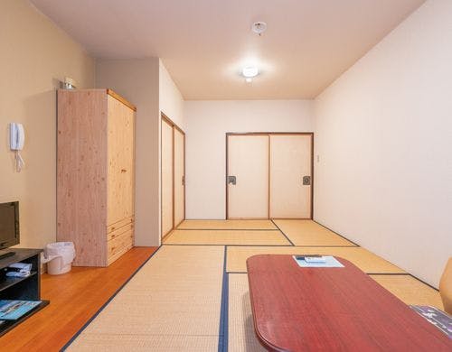 狭いビジネスホテルの洋室にお疲れのあなたへ。森の中にある広々和室でゆったり滞在型のホテルです一人様からファミリーまで、レジャーもビジネスもお気軽に! 長期滞在も歓迎します