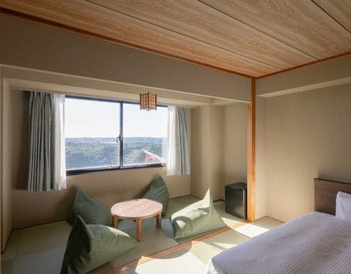 客室は33平方メートル以上の広さを持ち、的矢湾や鳥羽湾を見渡せる贅沢な景観が魅力です。ナチュラルカラーを基調としたインテリアが、ゆったりとした空間を演出します。また、広々としたスイートルームや和室、バリアフリー対応の部屋も用意されており、利用者の多様なニーズに対応しています。