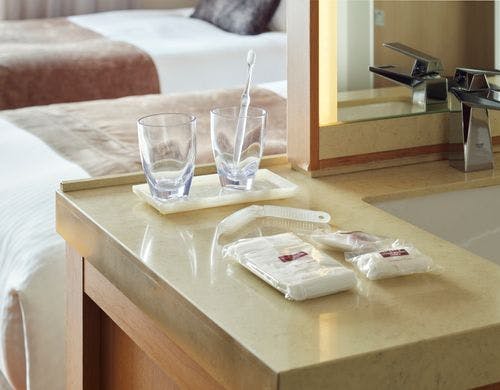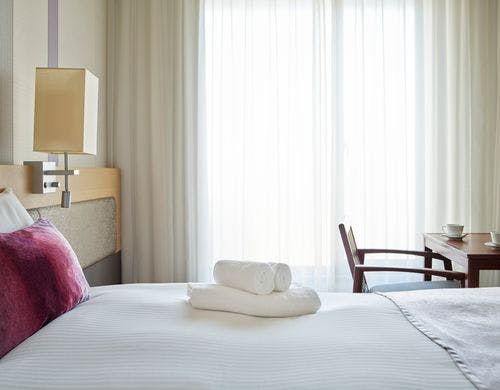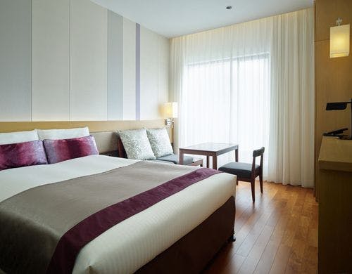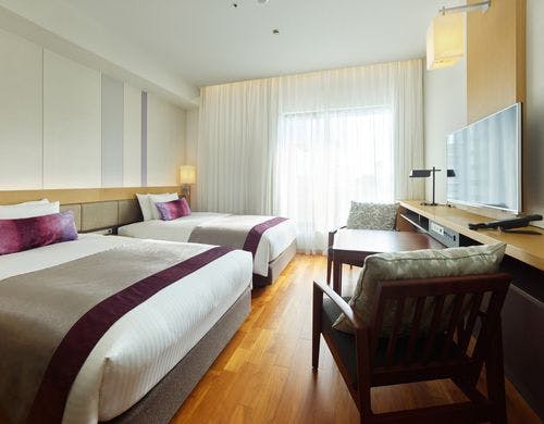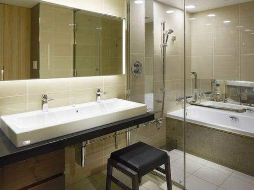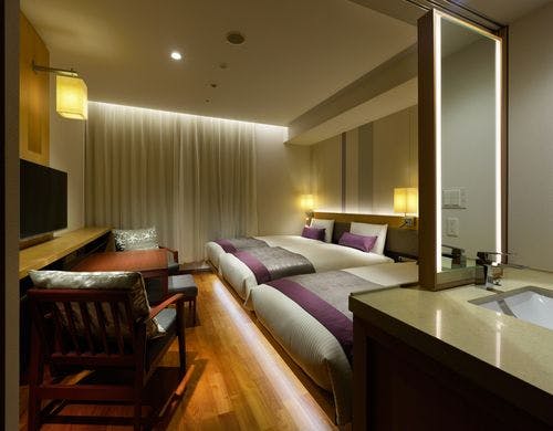 客室は快適性を重視した設計で、「プレミアムフロア」と「レギュラーフロア」に分かれています。上層階の「プレミアムフロア」では靴を脱いで過ごせるフローリング仕様を採用しています。また、バス、トイレ、洗面台がそれぞれ独立した空間として設けられ、上質なアメニティにより、快適な滞在が可能です。