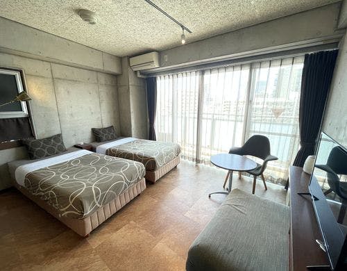 コンドミニアムタイプの客室で全室に洗濯機・乾燥機・キッチン完備!国際通りまで徒歩2分で観光にも、ビジネスにも、とてもオススメなロケーションです。那覇の中心で暮らすようにお過ごしください。