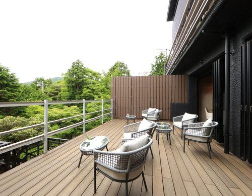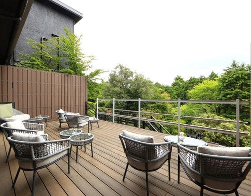 富士山が望める数少ない別荘地に位置し大自然を満喫できるモダン旅館。全9室源泉かけ流し半露天風呂付きで心ゆくまで湯浴みをお愉しみいただけます。
