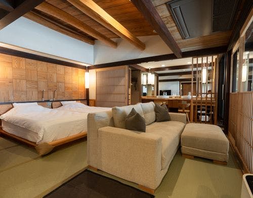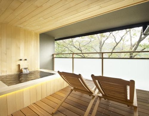 〔強羅花扇 円かの杜〕全室「温泉露天風呂付客室」木の温もりを感じる宿で源泉かけ流しの客室露天風呂と厳選素材の京会席を