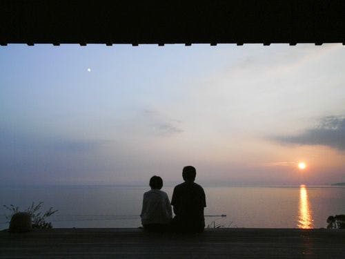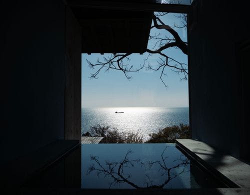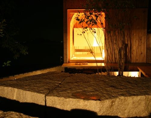 山口県は瀬戸内海、人間魚雷「回天」の大津島の地に、この空間は生まれました。一日一組だけの小さな平屋と茶小屋です。季節毎に変わる夕陽を眺めノスタルジックなひとときを・・・。