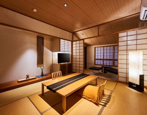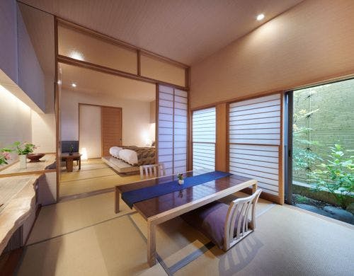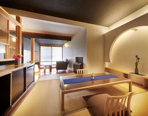 限定9部屋。お食事は個室食事処にて「いいものを、少しずつ」夕食は月替り×手仕事会席。朝は名物山葵飯。そして、美肌温泉。