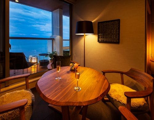 - 北陸新幹線「新高岡駅」→和倉温泉行バス40分「ひみ阿尾の浦温泉」から徒歩6分。「氷見駅」から車で15分。