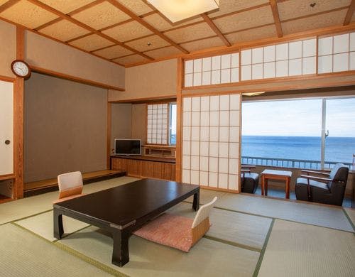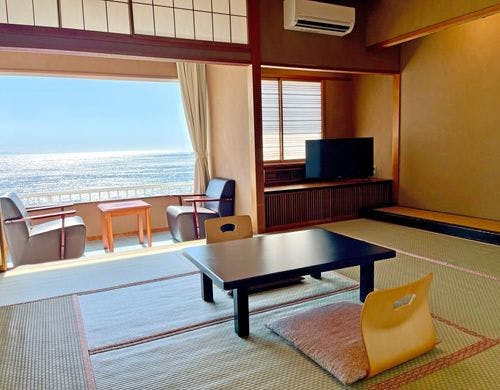 オーシャンビュー客室もあり眺望が自慢の宿です。駿河湾を一望できる大浴場は格別です。