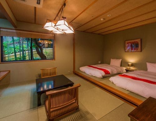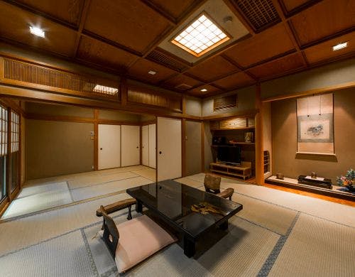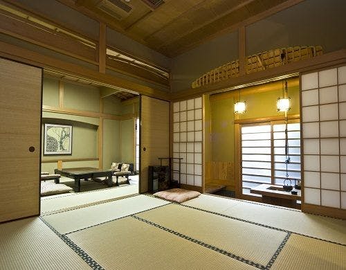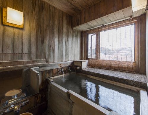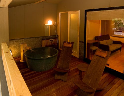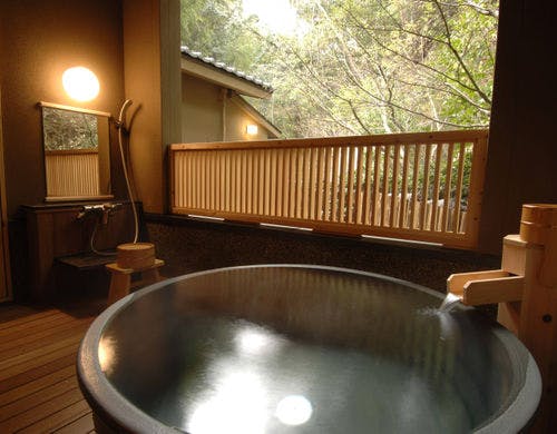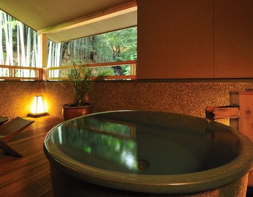 竹林に囲まれた17室の小さな料亭旅館。全室温泉かけ流しお風呂付、旬の食材に拘った月替わりの和会席料理。