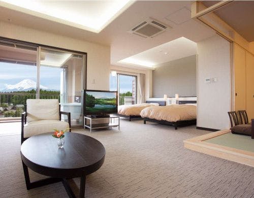 全室富士山ビュー。富士山周辺観光の拠点にも便利な立地。おいしいお料理と温泉大浴場有り
