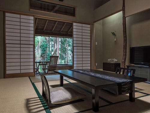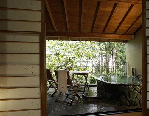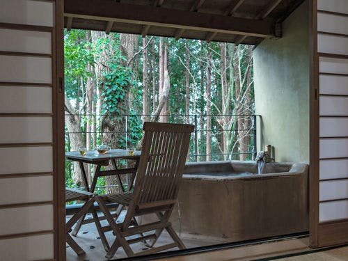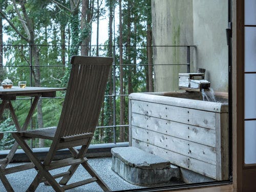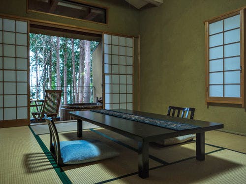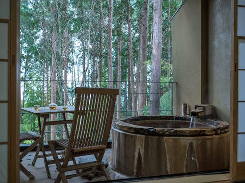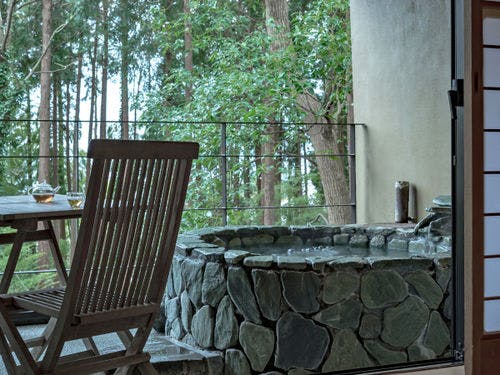 天然温泉が溢れる露天付きの本館は全5室。そして、2棟の離れ-別荘 Suite Villa-は贅沢な古民家風隠れ家。