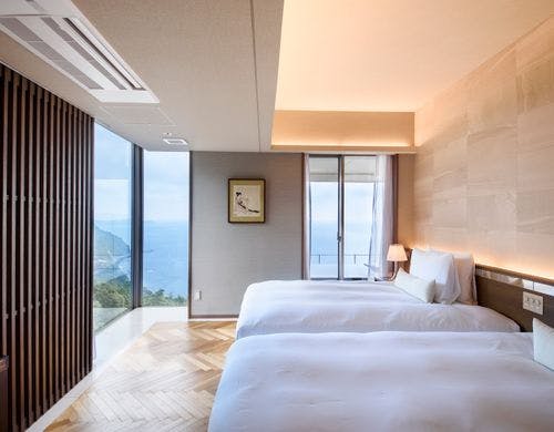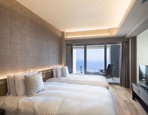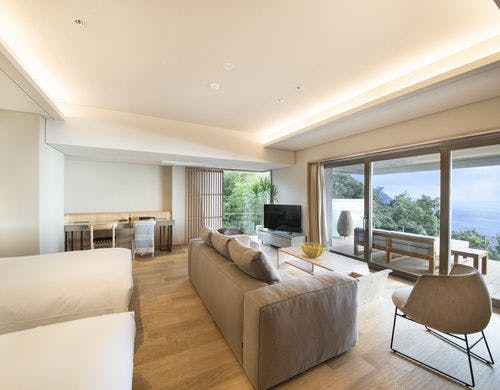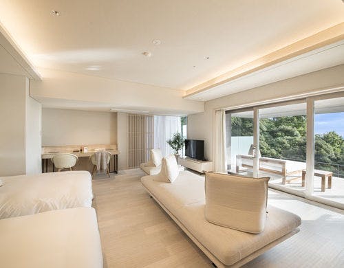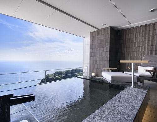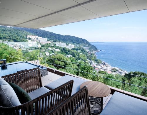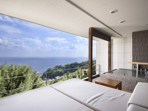相模湾を望む、熱海伊豆山温泉の丘全室源泉かけ流し客室露天風呂山と海に抱かれ四季折々の時を愉しむ至福の日本料理とともに特別なひと時に出会えるそれが「ATAMI せかいえ」