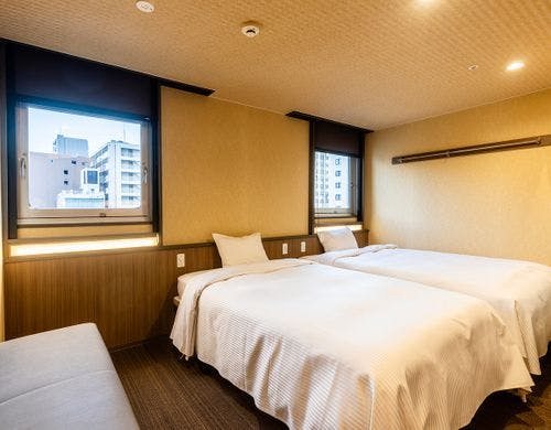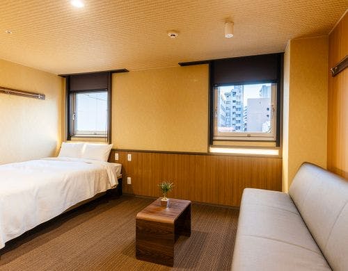 客室には液晶テレビやWi-Fi、加湿機能付きティーサーバー、ウォシュレットなど、快適に過ごすための設備を完備しています。セミダブル、ダブル、ツインルームの各タイプがあり、ニーズに合わせて選べます。貸し出し備品も充実しており、ズボンプレッサーやアイロンを利用可能です。