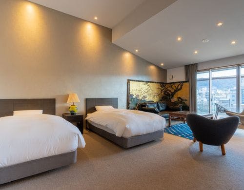 京都らしさを感じながら旅を楽しむ鴨川沿いのホテルです。京都を訪れる方のそれぞれの大切な思いに寄り添い、ここで過ごす時間は特別でユニークなひとときであってほしい。 どの部屋の景色もお客様の心の糸にふれて旅の思い出となる一期一会であるようにと思いを込めてしつらえました。