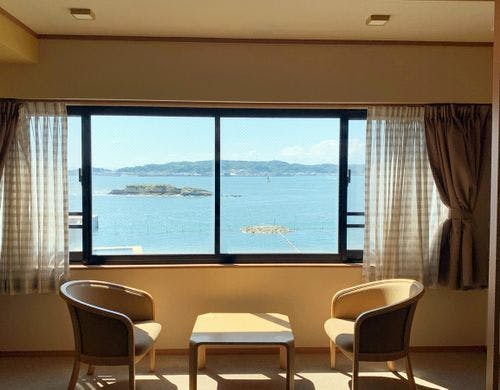 目の前がサンセットビーチ。展望風呂から眺める夕日に感動!日間賀が育んだ豪快。海の幸を満喫◎海のそばで癒しの時間。