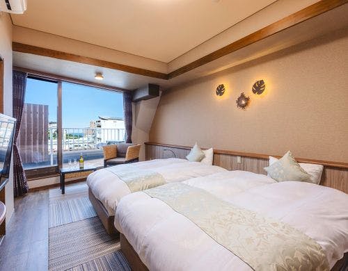 「温泉露天風呂付客室」が人気のオーシャンリゾート/姉妹館の「最大16の湯めぐり」も無料