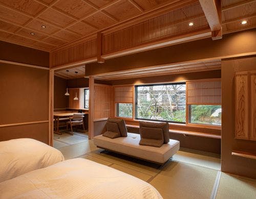 緑豊かな自然に歴史建築と現代が融合した空間の宿