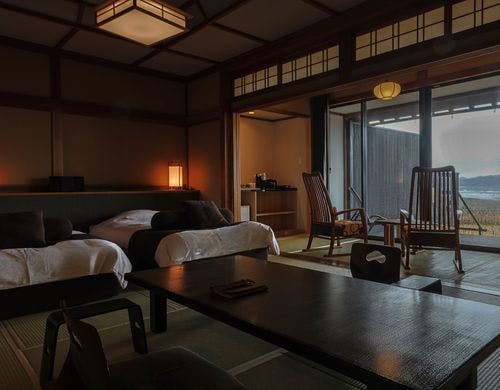 - 京都丹後鉄道・夕日ヶ浦木津温泉駅から徒歩で約20分、送迎バスで約5分/京都縦貫道・京丹後大宮IC下車約40分