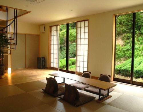 新静岡ICから車で約15分。1日2組様限定の森に佇む一軒宿ですごす癒しのひととき。自慢の創作料理をご堪能ください。
