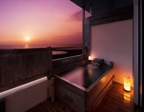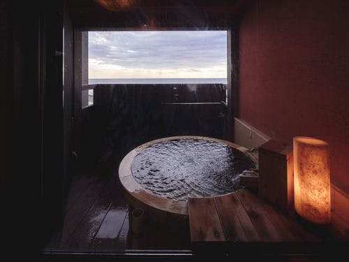 西伊豆の浜辺に佇む隠れ宿。眺望抜群の露天風呂付客室が大人気!ビーチまで徒歩10秒♪