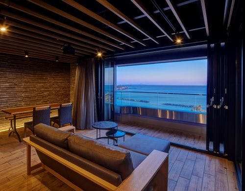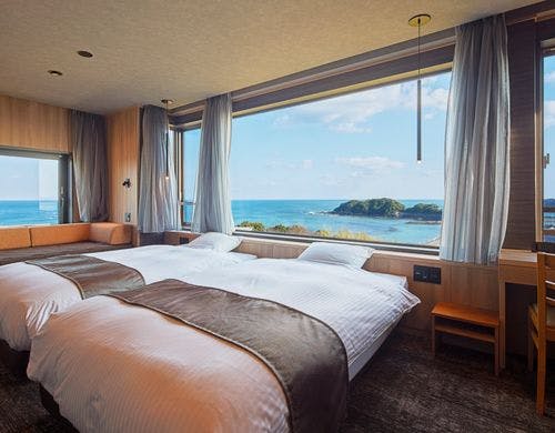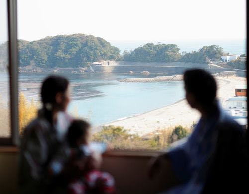海ぞいの丘陵に建ち,和洋の中に息づく心潤す感性、何故か懐かしい暖かなおもてなしと海女の町ならではの海幸をふんだんに使った味覚と温泉の宿。