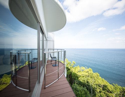 【都心から最短60分の非日常へ。】煌めく水平線を望む天空宿。全室、絶景の専有掛け流し温泉付き。極上のフレンチに加え、滞在中のお飲み物もオールインクルーシブの贅を極めた温泉宿が誕生。