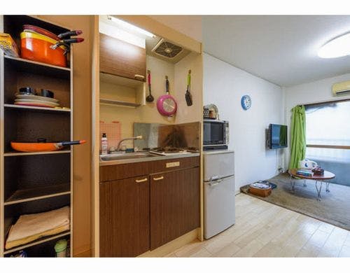各お部屋にはバス、トイレをはじめキッチン、食器も置いてます。難波、天王寺迄20分