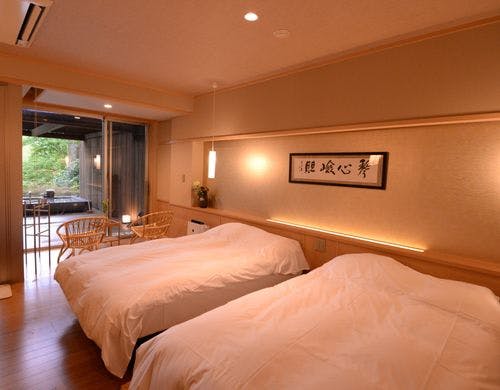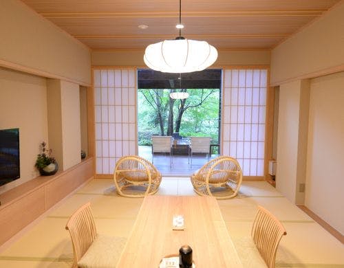 平成28年7月開業 白檀の香る 全室に源泉掛け流し露天の至極の懐石料理の高品位旅館 雄大な山並を見晴らす最上のひとときを