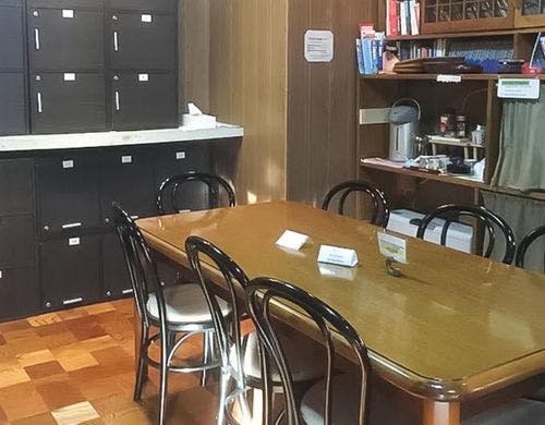 築60年以上、伝統的な入母屋造りのゲストハウス。共用部には3つのシャワー室と貸切風呂、キッチン、冷蔵庫、自動販売機、鍵付きのロッカー(無料)、洗濯機・乾燥機(※いずれも有料)があり、長期滞在にも適しています。富士急行線「河口湖駅」より徒歩約5分、中央道河口湖富士吉田I.C.から約1.5km。