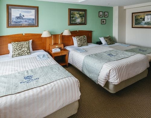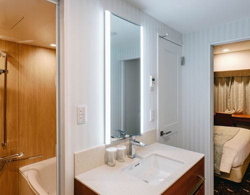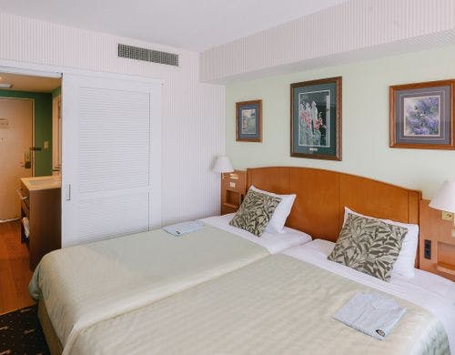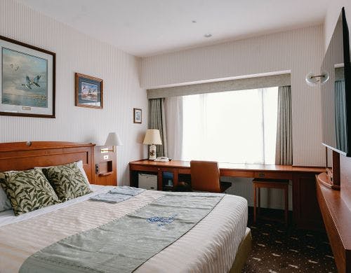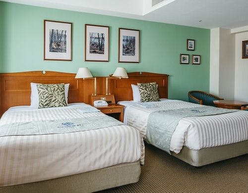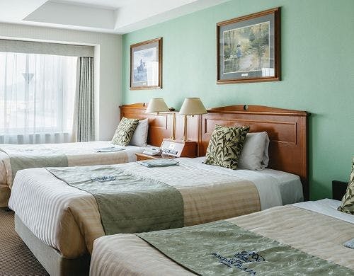 客室はアメリカントラディショナルな色調でまとめられ、快適な滞在を提供します。サウスウイングには、開放的なビューバスルームやバリアフリー対応の客室があります。ノースウイングには、ビジネス向けのスタンダードルーム、広々としたデラックスルーム、スイートルームなどがあります。