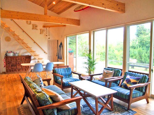 カリフォルニアの別荘をイメージした、東浪見のバケーションレンタルハウス。海まで徒歩3分、デッキにあるサウナ、星空ジャグジーとハンモックで優雅な時間をお過ごしください。
