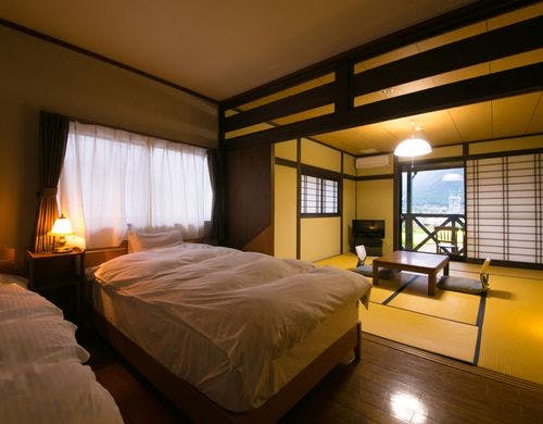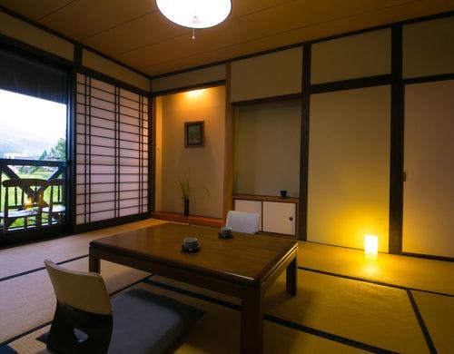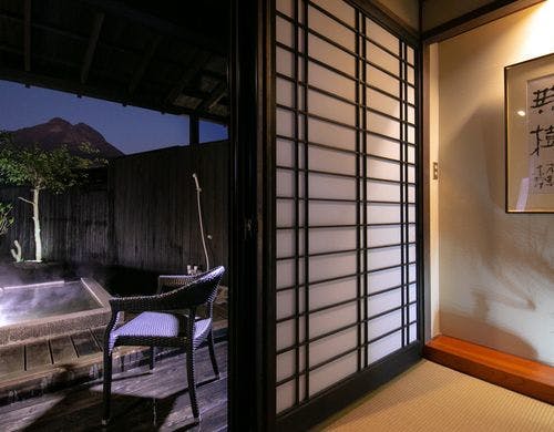 茶香る宿。由布岳が望める広々としたお部屋で由布院の風と茶の香りでリラックスした時をお過ごし頂けます。