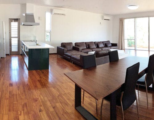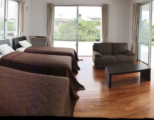目の前が海。7月~10月は部屋貸し。11月~6月は一棟貸し。期間により入れ替わります。