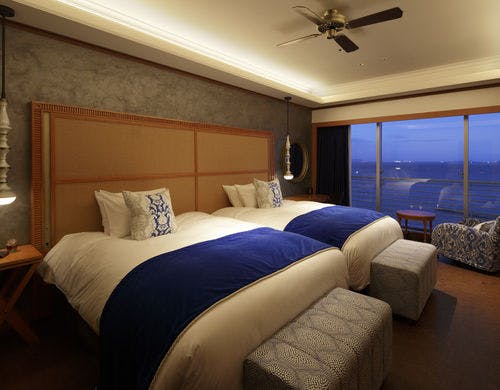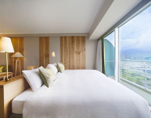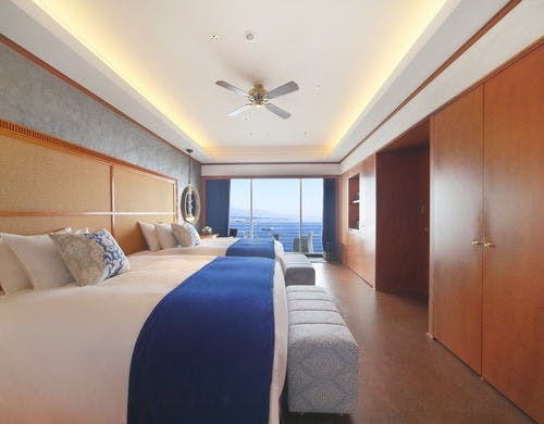 客室の特徴「Vista(ビスタ)」、「Aqua(アクア)」など、テーマ性を持つ客室はそれぞれが異なる魅力を持ち、ビューバス付きの部屋や、光と自然をモチーフにした空間などを備えています。1~4名までの宿泊人数にも対応しており、用途に合わせて選べる多彩なタイプが揃っています。落ち着いた雰囲気と快適性が両立した設計です。