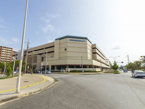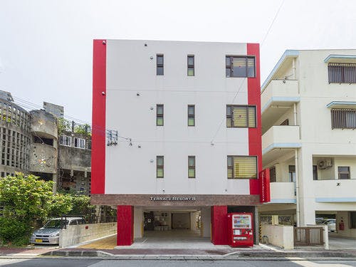 好立地!ビーチ、イベント会場(沖縄コンベンションセンター)、ショッピング徒歩圏内!赤い柱が目印です!