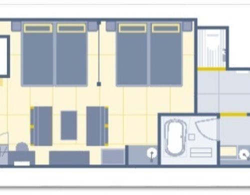 畳敷きに和ベッドを配した客室は、ツインからスイートまで多様なタイプをご用意。ユニバーサル対応のデラックストリプルや角部屋仕様のフォース、広々としたスイートルームなど、旅のスタイルに合わせて選べます。全室に客室風呂を備え、快適さと和の趣を感じる空間です。