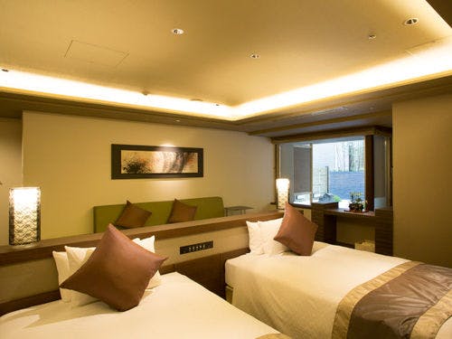 客室の特徴客室は、畳敷きの和室や、エアウィーヴ導入ルーム、ファミリー向けのファミリールーム、最大6名で利用可能なコネクティングルームなど、多彩な客室タイプが揃っており、目的に合わせて選べます。最上階のフロアには、落ち着いた雰囲気の中で東山の眺望を望むことのできる、専用ラウンジがあります。